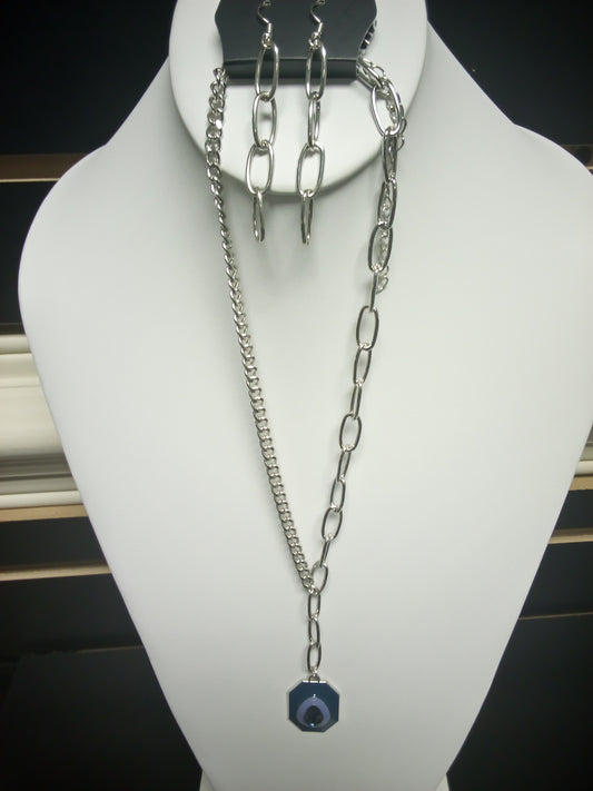 HEMATITE GRAY TEARDROP STONES AND PEARL FORMAL NECKLACE SET