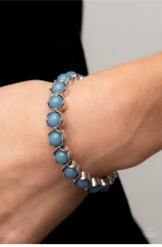 Lets be Buds - Blue Dewey Bead Silver Stretchy Bracelet