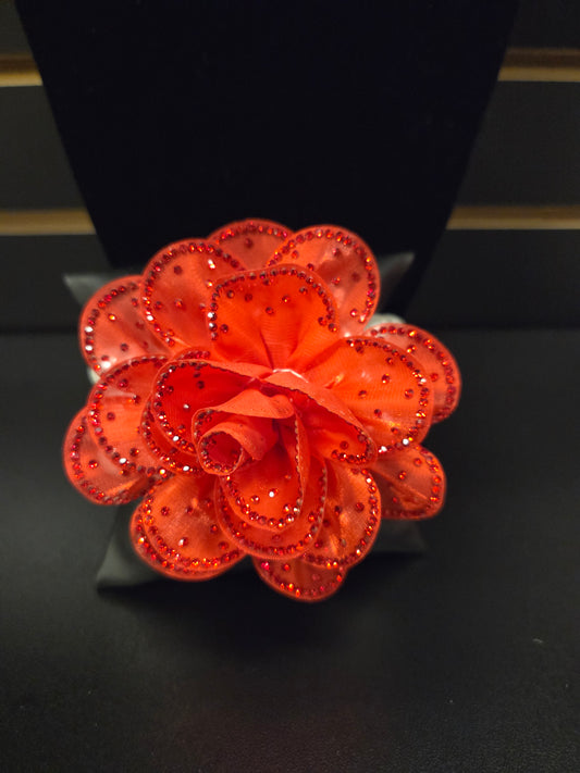Radiant Red Rhinestone Flower Brooch
