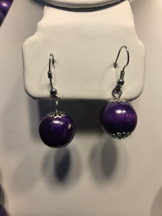 Bold Purple Beaded Necklace & Earring Set