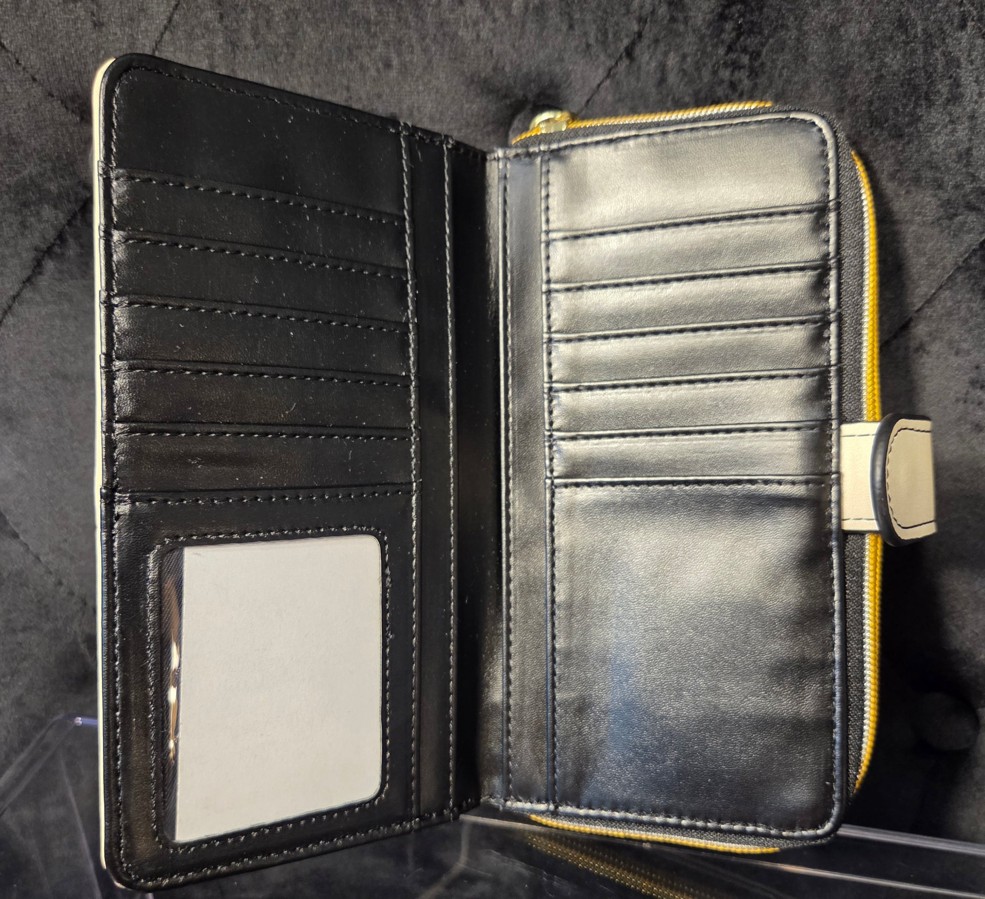 Stay organized in style with this Kansas City Chiefs cheerleader wallet, designed for fans who love extra space and a bold look. Featuring a fun cheerleader graphic in vibrant Chiefs red and gold, this wallet offers 12 card slots, a secure snap closure, and a zipper section for cash, coins, and extras.