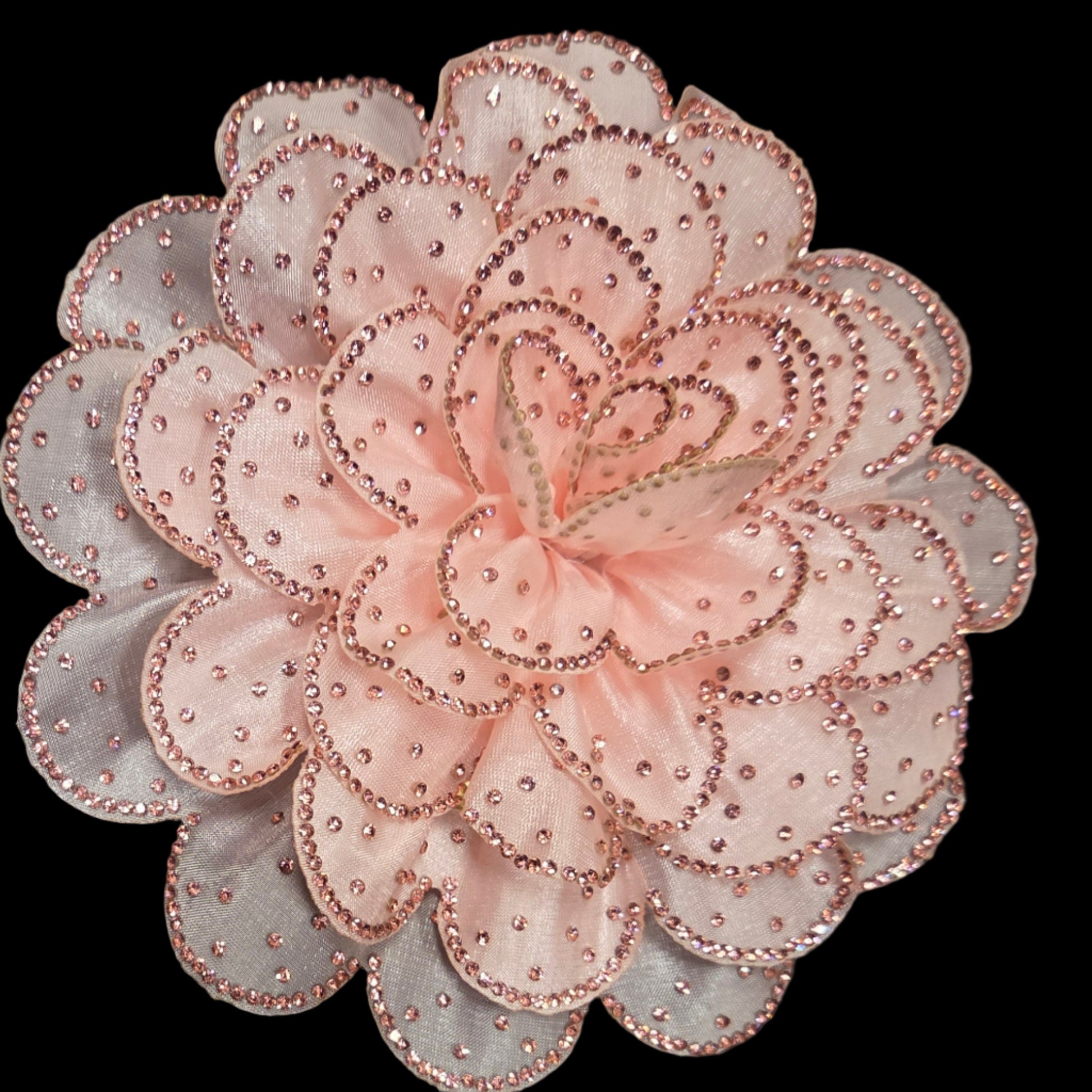 This versatile design allows the flower to be easily attached to hair, clothing, hats, handbags, or scarves. The blush pink color and satin-like shimmer make it ideal for special occasions, weddings, pageants, or elegant everyday wear.