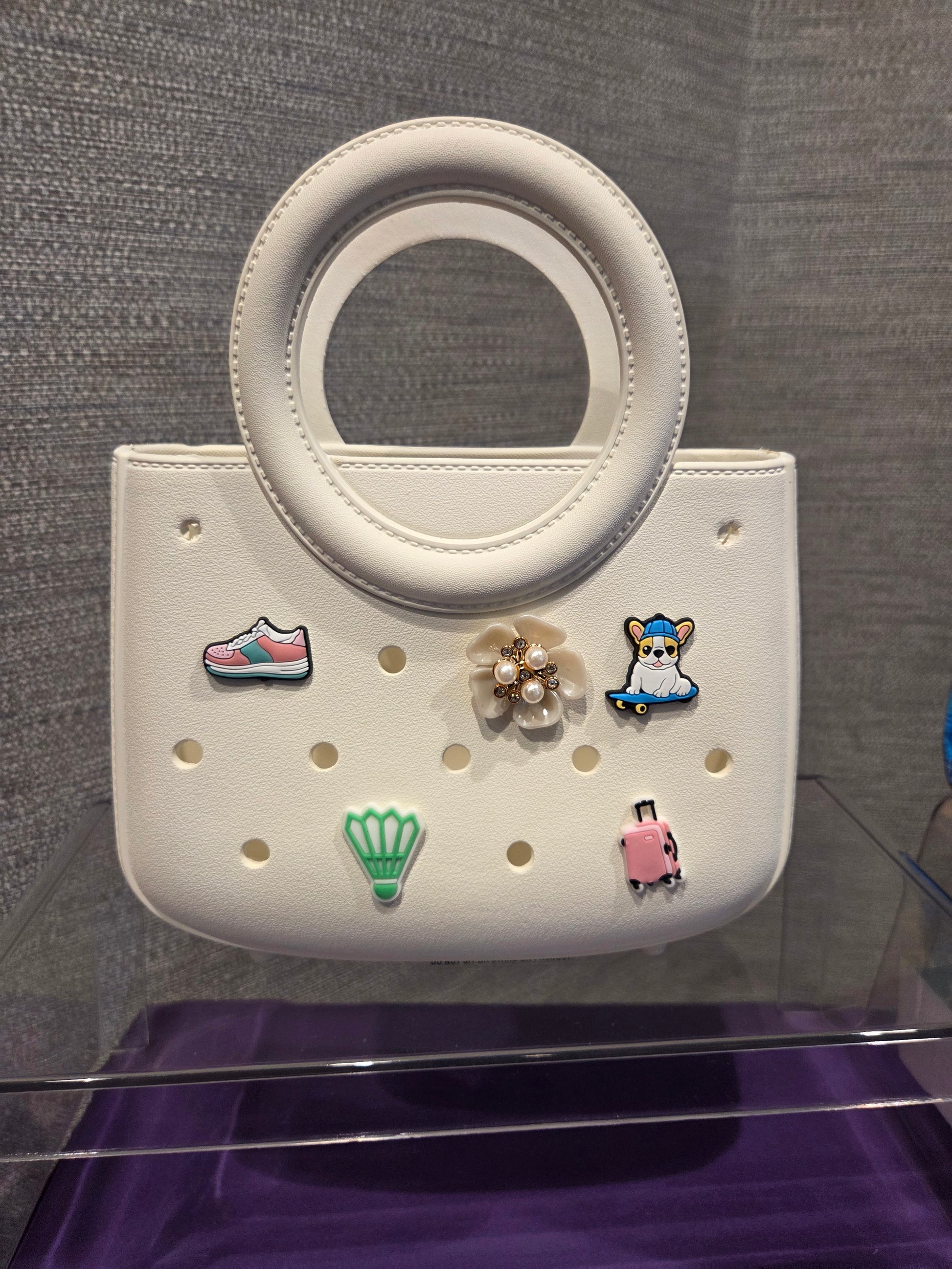 Elevate your everyday style with this chic Ivory Charm Mini Tote Bag. Designed with a clean, structured silhouette and smooth circular top handles, this bag offers a modern yet playful look. The neutral ivory tone makes it versatile and easy to style, while the front charm holes are accented with fun and stylish decorative charms, including travel-inspired and playful motifs for a personalized touch.