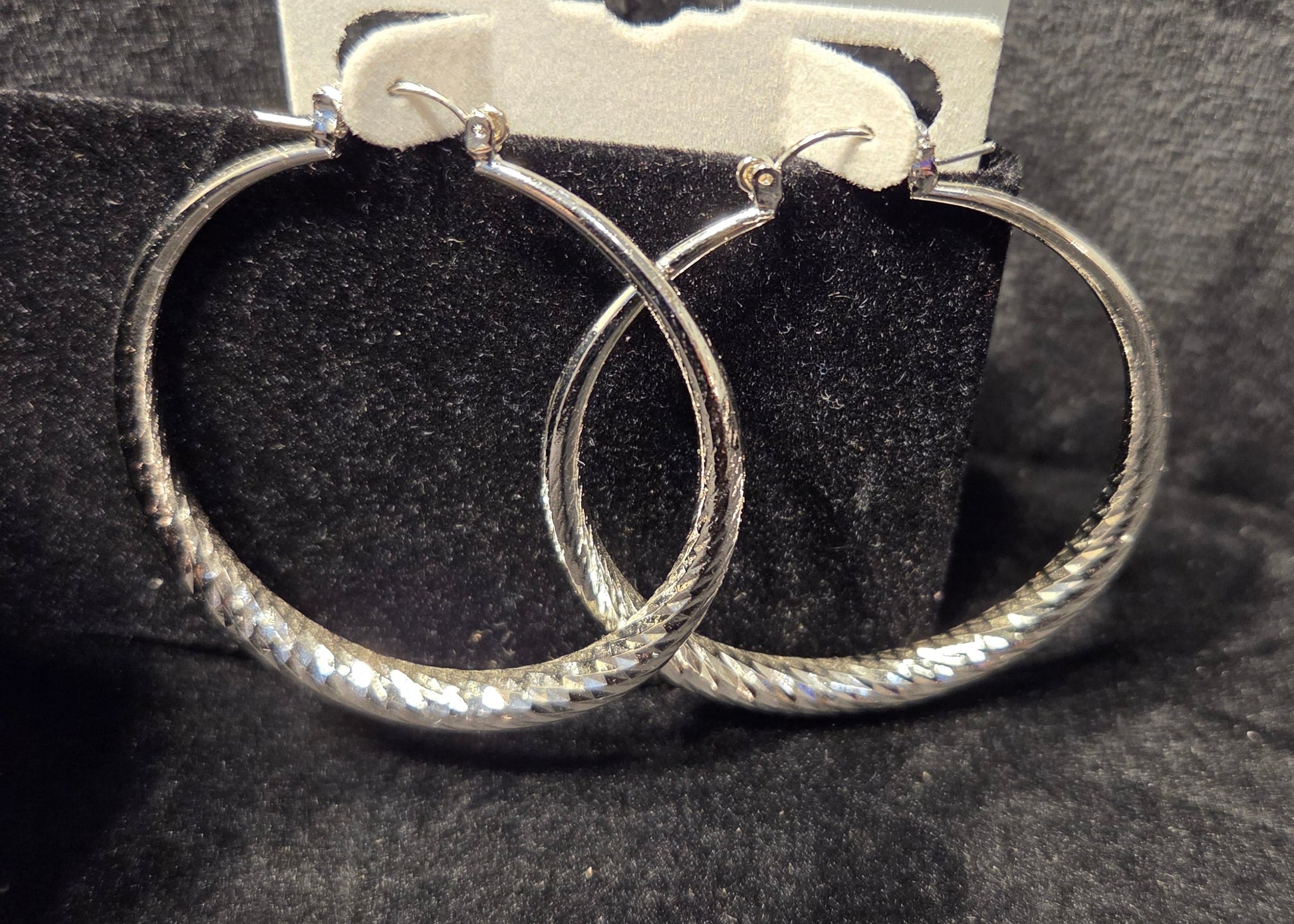 Elevate your everyday look with these Silver Diamond-Cut Hoop Earrings — a must-have for lovers of shine and sophistication. The textured detailing creates a brilliant reflective finish, giving these hoops a luxurious sparkle that complements any style. Lightweight yet striking, they bring just the right amount of glam to every occasion.
