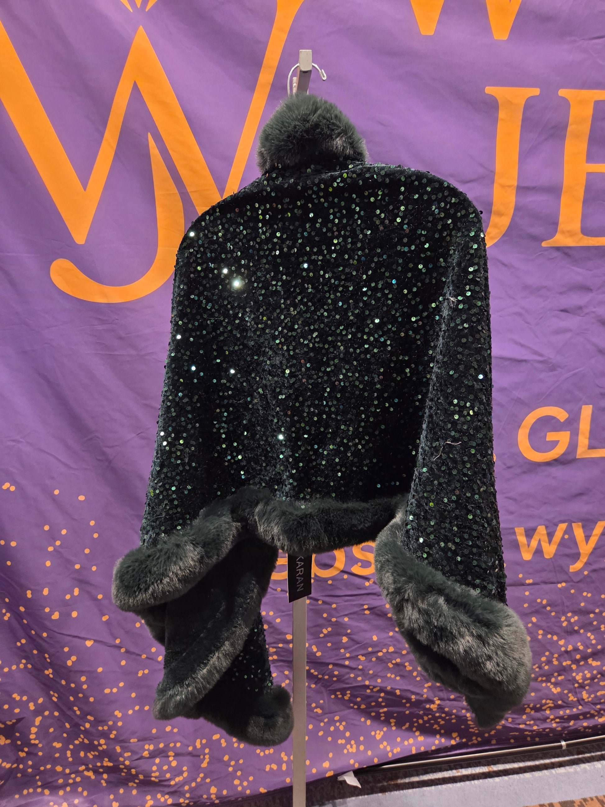 Black Sequin Faux Fur Trim Jacket