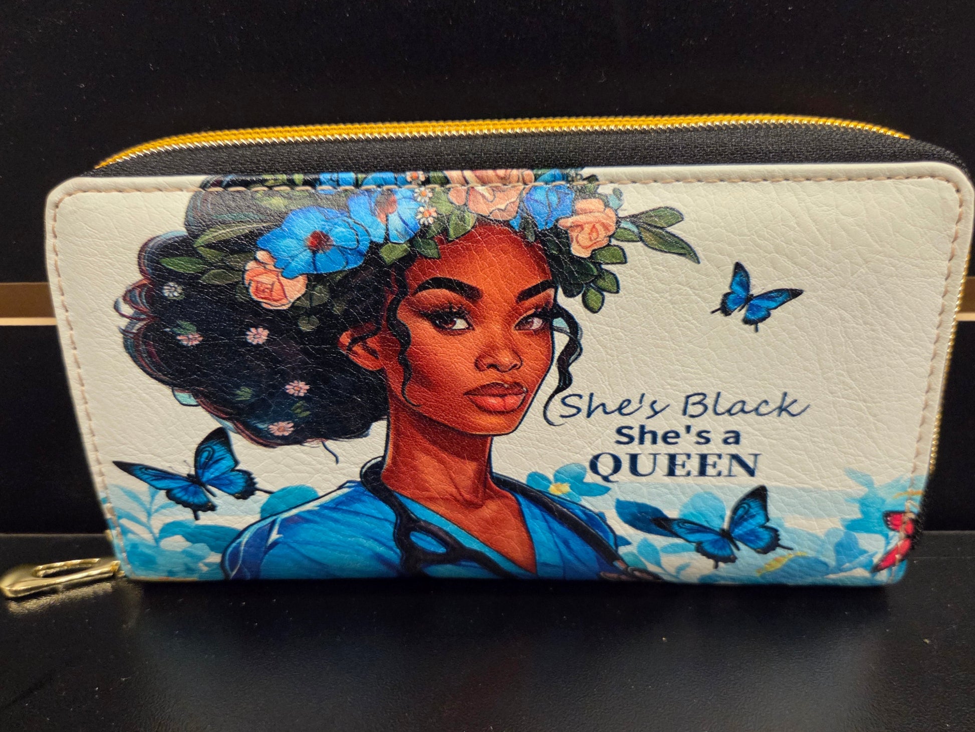 Make a bold and beautiful statement with this empowering “She’s Black, She’s a Queen” Handbag and Wallet Set — a tribute to strength, grace, and pride.